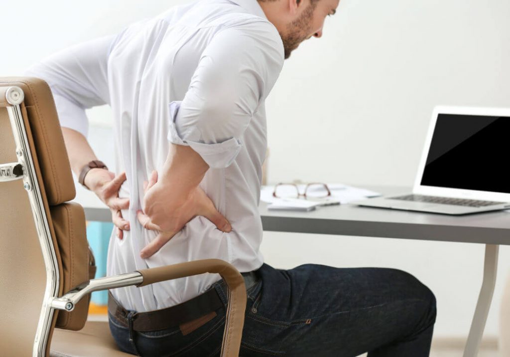 Duduk lama dengan posisi yang salah atau tidak ergonomis akan menimbulkan kontraksi otot. Otot-otot punggung akan bekerja keras menahan beban anggota tubuh bagian atas yang bekerja. Otot tesebut akan mudah mengalami kelelahan dan akan mengalami nyeri otot sekitar punggung. Jika kondisi ini berlangsung lama, maka akan menyebabkan penekanan pada saraf tulang belakang yang berakibat penjepitan saraf atau hernia nukleus pulposus (HNP). HNP ini akan menyebabkan nyeri punggung bawah, kesemutan yang bisa menjalar ke tungkai hingga kaki. Bahkan bila parah, bisa menyebabkan kelumpuhan.
